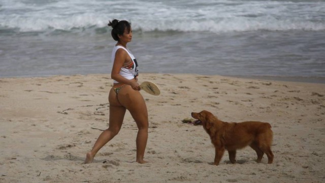 Carol Nakamura e o namorado zagueiro exibem boa forma em tarde de diversão na praia
