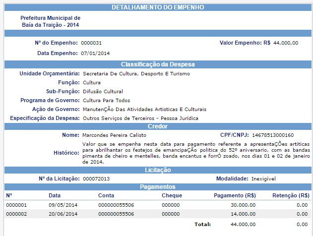 Sagres: ‘As Coleguinhas’ e atrações do Carnaval 2014 ainda não foram pagos pela Prefeitura de Baía da Traição