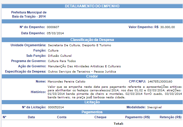 Sagres: ‘As Coleguinhas’ e atrações do Carnaval 2014 ainda não foram pagos pela Prefeitura de Baía da Traição
