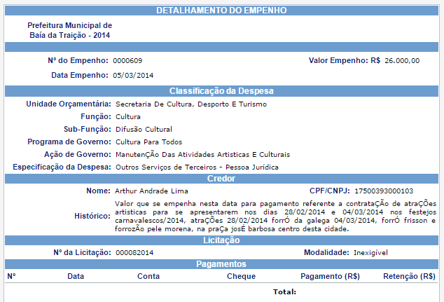 Sagres: ‘As Coleguinhas’ e atrações do Carnaval 2014 ainda não foram pagos pela Prefeitura de Baía da Traição