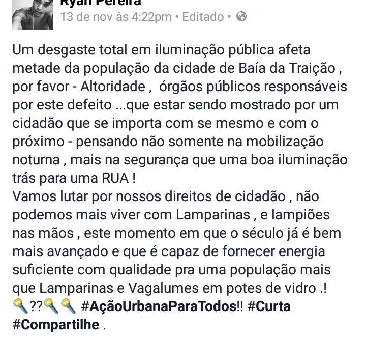 Falta de iluminação pública preocupa moradores de Baía da Traição; veja fotos