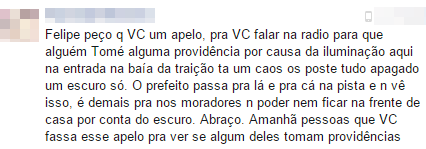Cidadã baiense pede apoio à imprensa para denunciar falta de iluminação pública