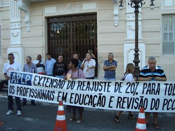Professores fizeram protesto na frente da sede do Estado