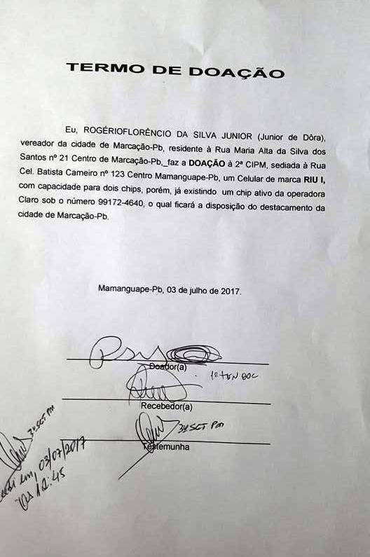Aparelho celular doado por vereador servirá de linha direta entre a Polícia e população em Marcação