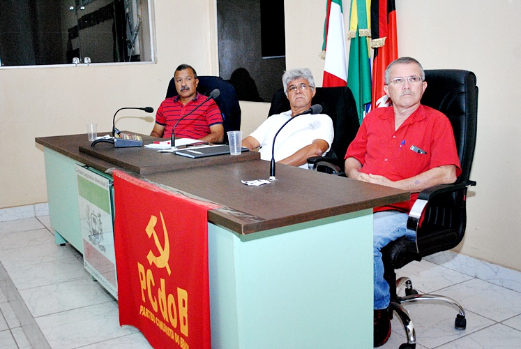 No centro da foto, Sergio Cunha presidindo conferência do PCdoB