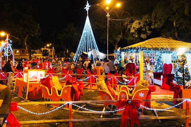 Vestido de Papai Noel, prefeito entrega presentes na abertura do Natal Iluminado de Rio Tinto
