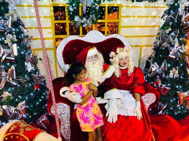 Vestido de Papai Noel, prefeito entrega presentes na abertura do Natal Iluminado de Rio Tinto